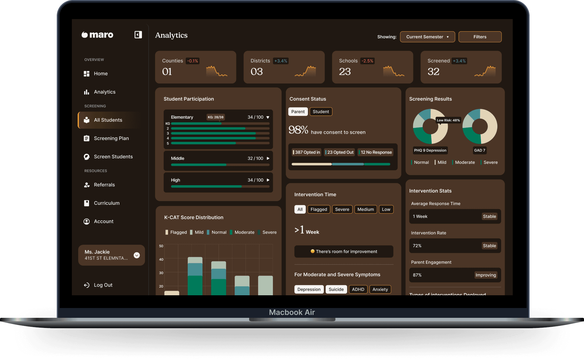 Maro makes it easy for school administrators to implement a complete mental health screening program.